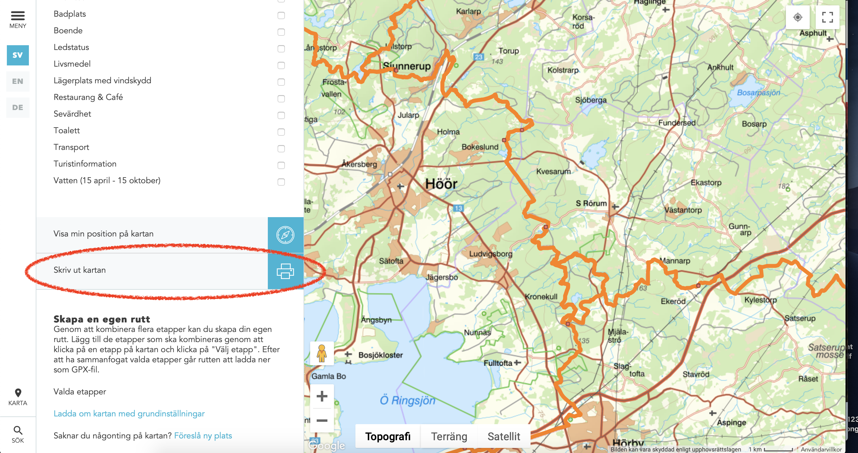 Vill du välja flera etapper markerar du de etapper som du intresserad av och klickar sedan på 'Skriv ut karta'.