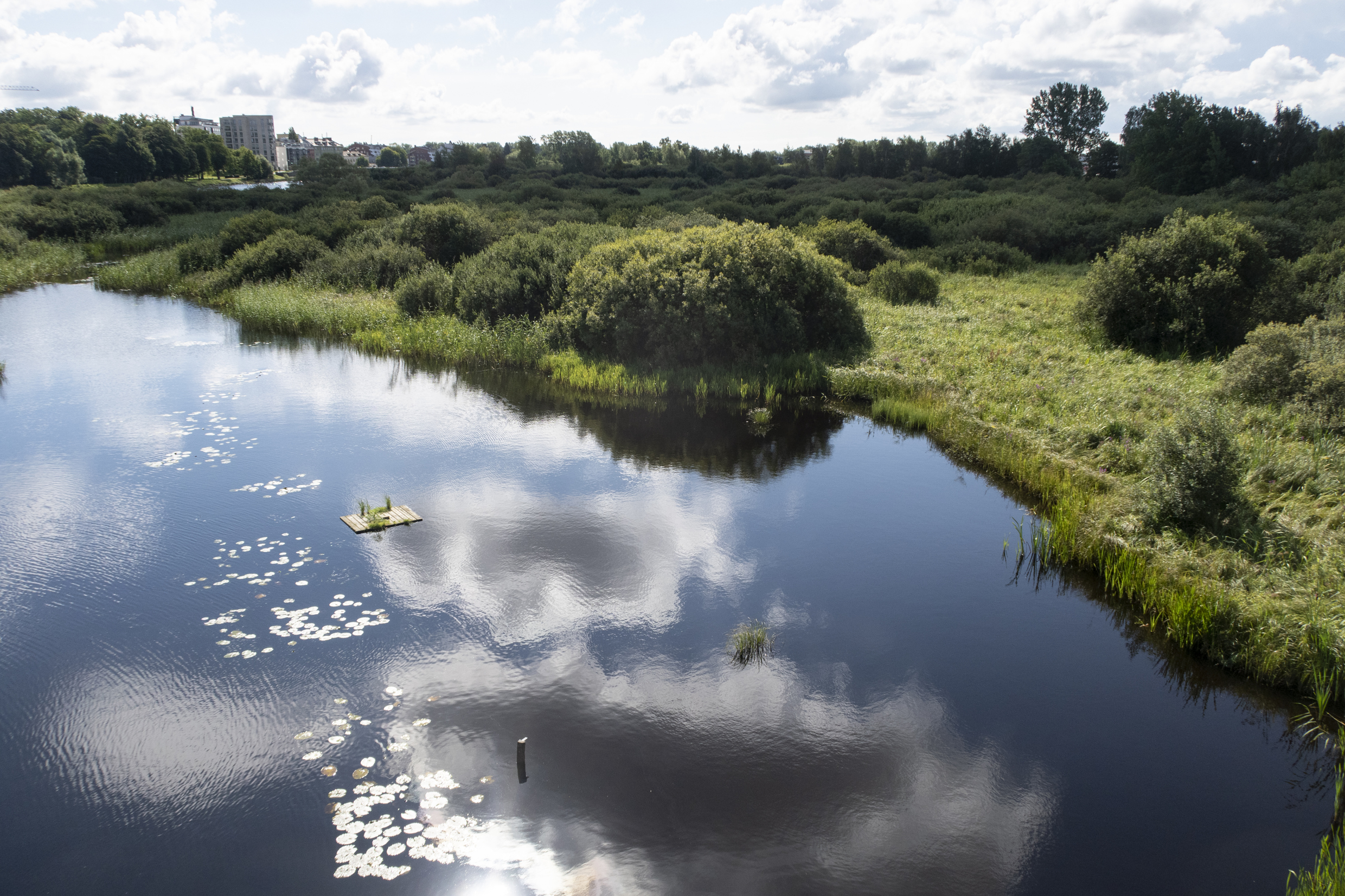 Vid den imponerande bron till naturum Vattenriket avslutas vandringen. Här finner du det mesta du kan önska dig: från fika till skötmöjligheter, Tivoliparkens fantasirika lekplats och Barbacka kulturhus. Några steg bort ligger centrum, buss- och tågstation.